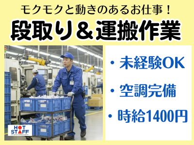 日勤のみ・時給1400円【空調完備の工場内で段取り&運搬作業】完全土日休み