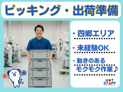 ラフな職場★ピッキングして台車で運ぶ出荷準備♪未経験OK・2交替・土日休み