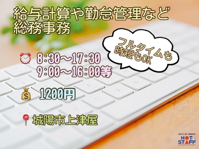 土日祝休み/勤怠管理や給与計算などの総務事務