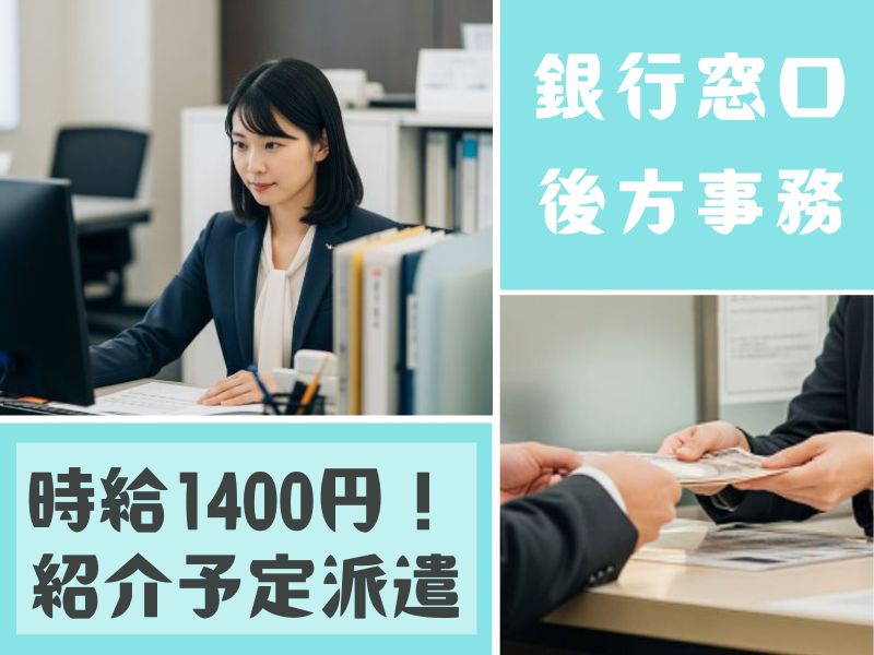\紹介予定派遣/駅チカ、銀行でのお仕事◇+ お客様とは喋らない後方事務♪直接雇用前提で時給1460円☆彡