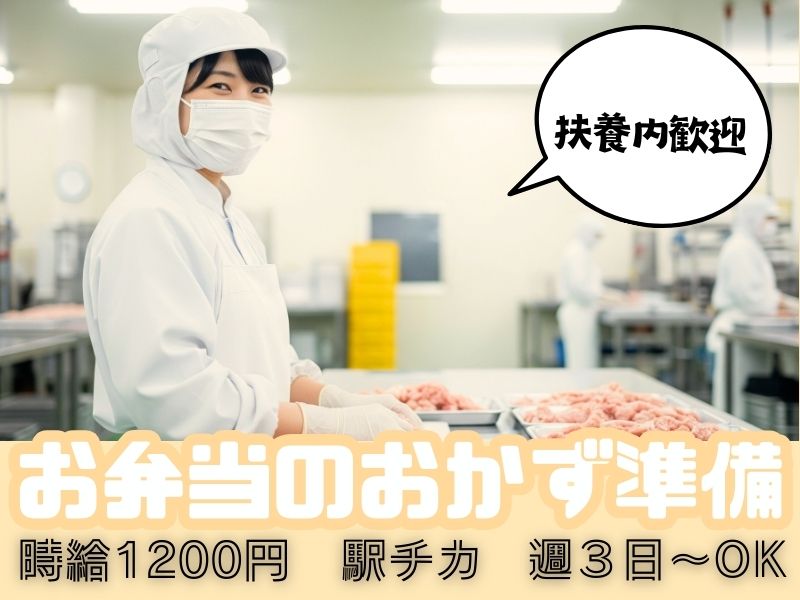 《出屋敷駅~徒歩5分》お弁当のおかず→はさみでカット♪扶養内okで高時給1200円スタート(*ノωノ)