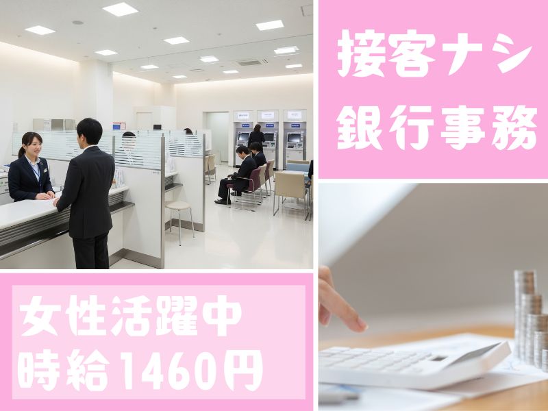 \紹介予定派遣/駅チカ、銀行でのお仕事◇+ お客様とは喋らない後方事務♪直接雇用前提で時給1460円☆彡