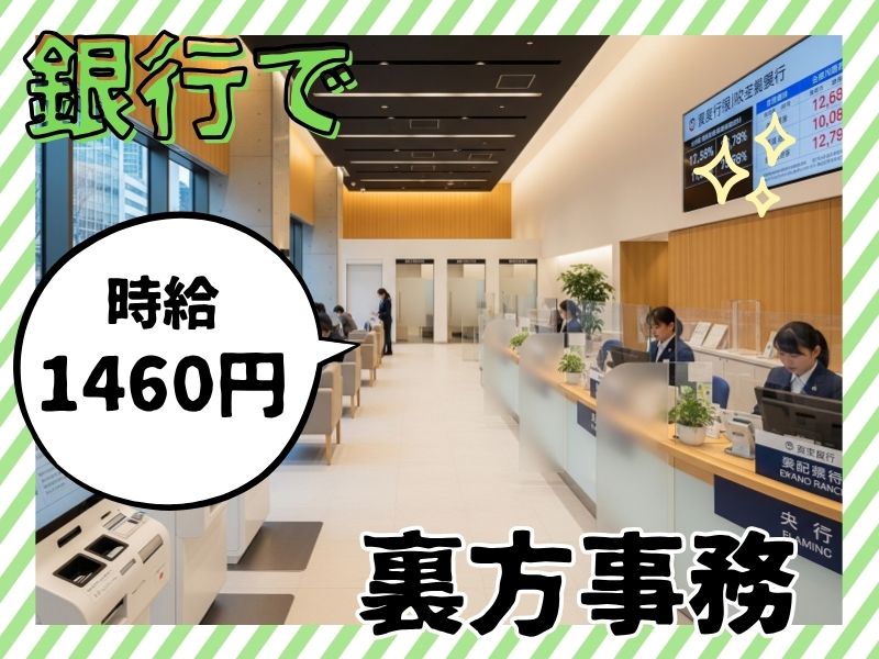 \紹介予定派遣/駅チカ、銀行でのお仕事◇+ お客様とは喋らない後方事務♪直接雇用前提で時給1460円☆彡
