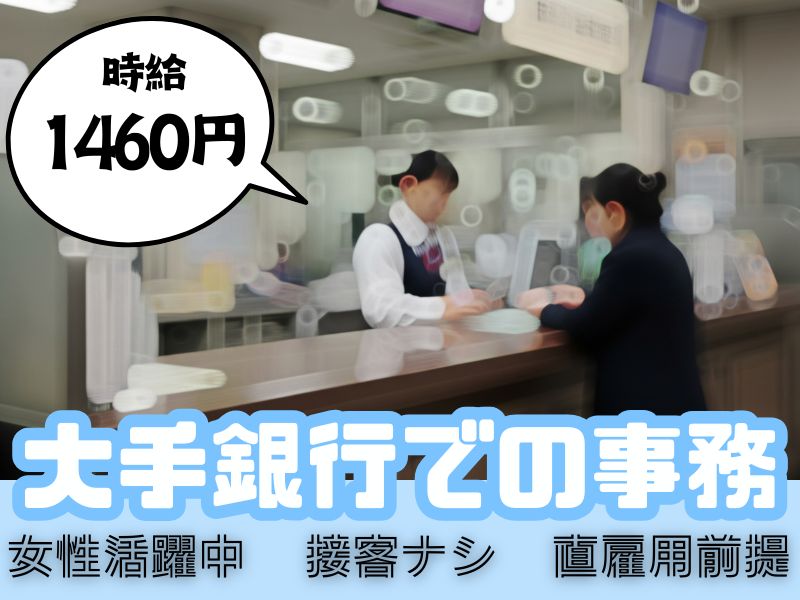 <紹介予定派遣>時給1460円スタート♪大手銀行で接客は…なし!後方事務のおしごと(*ノωノ)