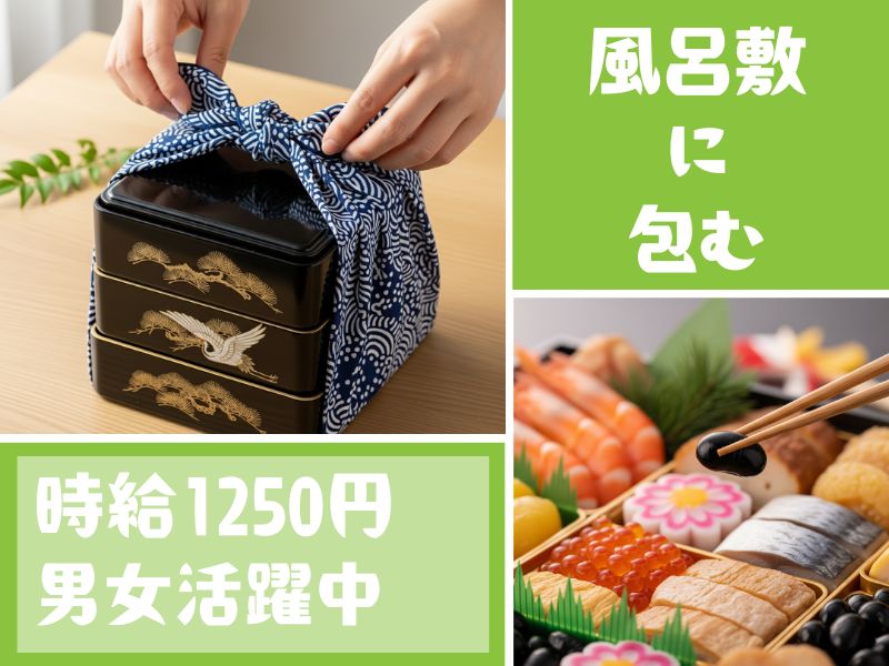 <12月末まで>風呂敷包み、箱詰めで時給1250円(*´з`)~♪包んで軽作業!空調完備です彡