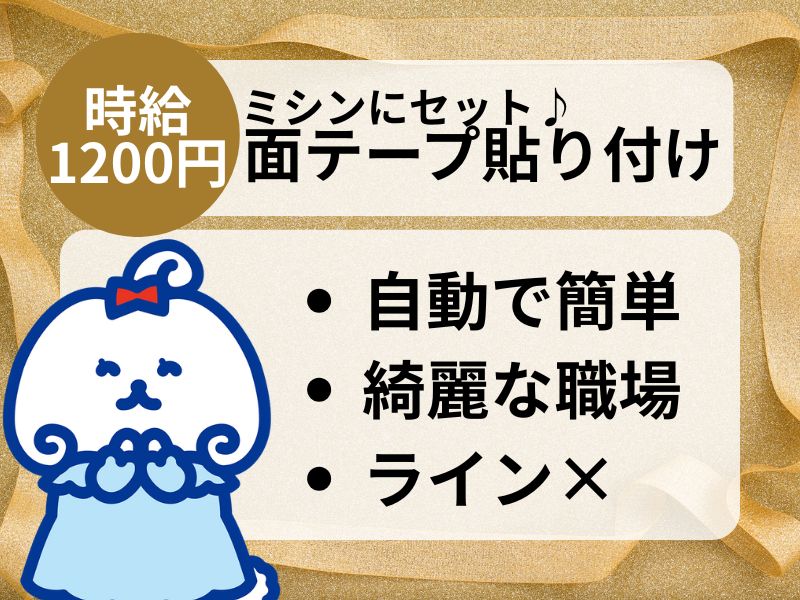 <綺麗な職場で快適勤務♪>ミシンにセットしてボタンを押すだけ♪面テープの貼り付け作業◎土日祝休