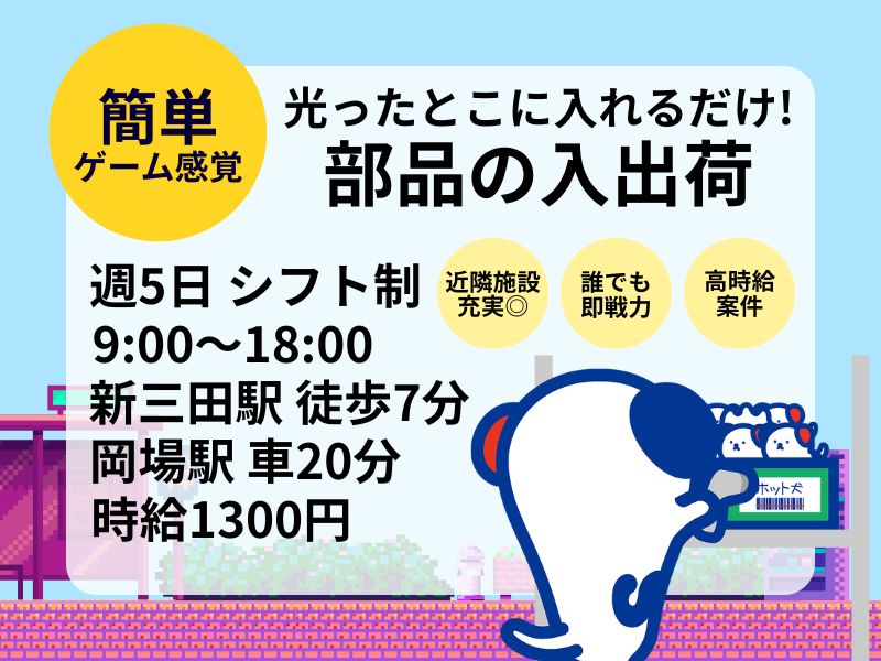 <時給1300円以上♪>光ったところにいれるだけ!ゲーム感覚の入出荷作業*交通費全額支給♪
