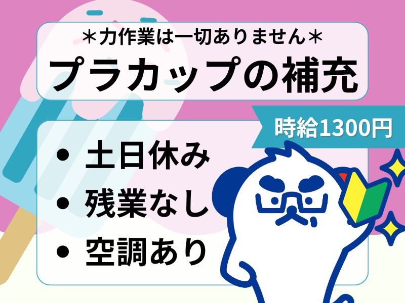 <力作業はありません♪>高時給1300円!かんたん作業*プラスチックカップの補充*長期休暇あり◎未経験歓迎~!