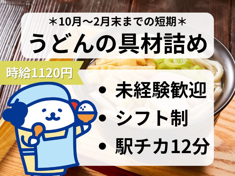 <*10月~2月末までのお仕事*>未経験歓迎!シンプル作業♪鍋焼きうどんの具材詰め*新長田駅から徒歩12分◎