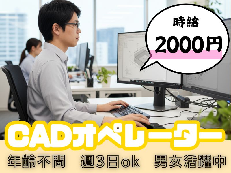 【*時給2000円*】CADオペレーター募集(`・ω・´)!週3日~勤務◎レーザー加工研究の補助員さん