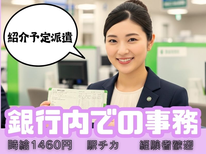 《紹介予定派遣のお仕事》銀行で直接雇用を目指せるΣ(・ω・ノ)ノ!駅チカ*接客ナシ*高時給*経験者大歓迎♪