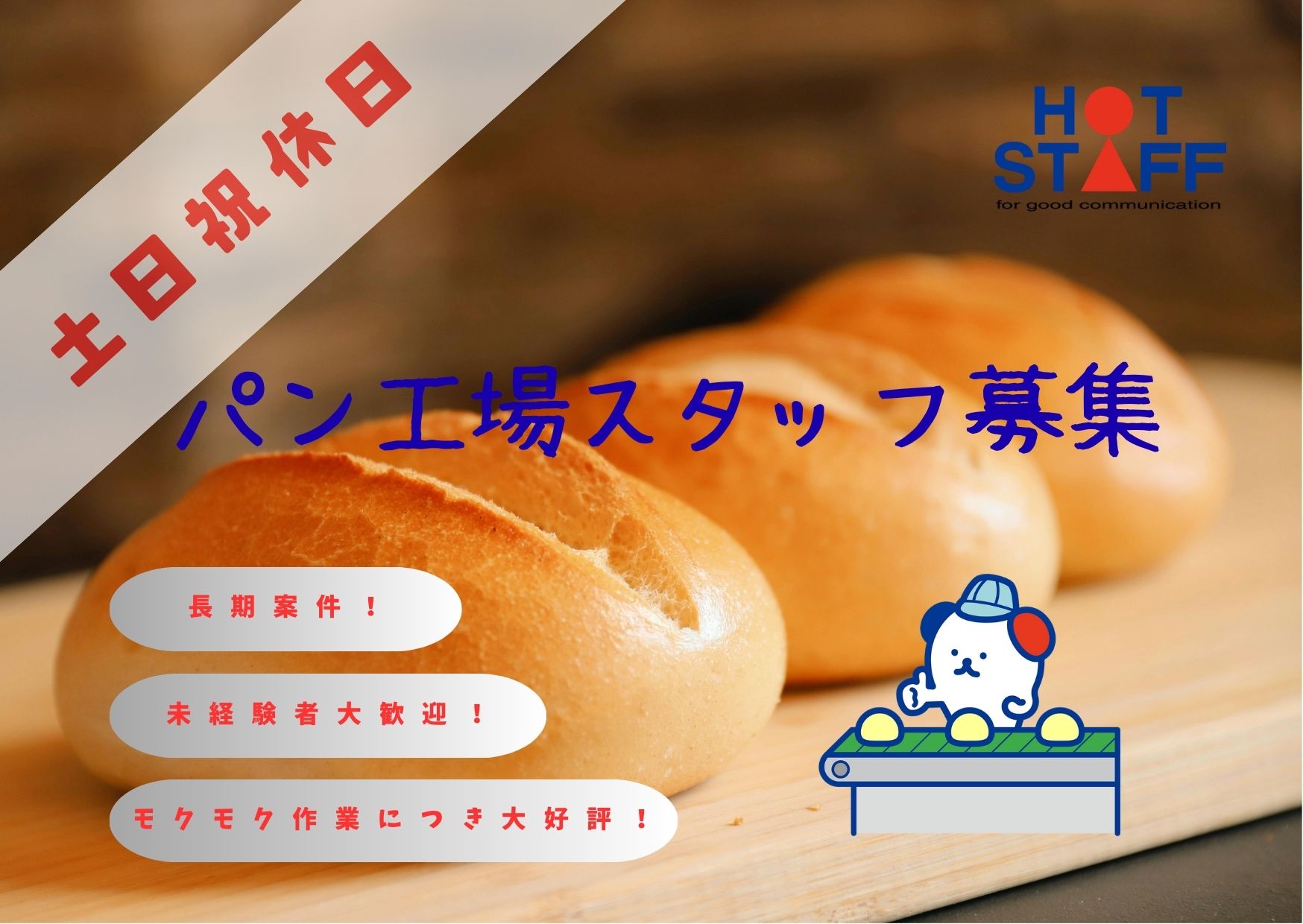 【1名募集×ホットスタッフ人気案件】単純もくもく作業│パンをひたすら流す流す~