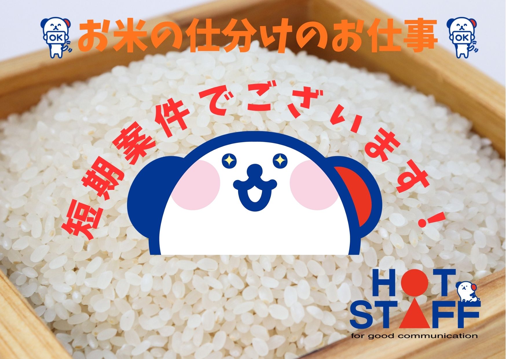力仕事なし! | 土日祝休み | 短期で稼げる!お米の検査スタッフ│前払いOK(規定有)・駅チカ