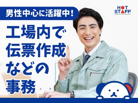 【入力ができれば大丈夫】工場内で伝票作成などの事務/未経験OK/時給1300円