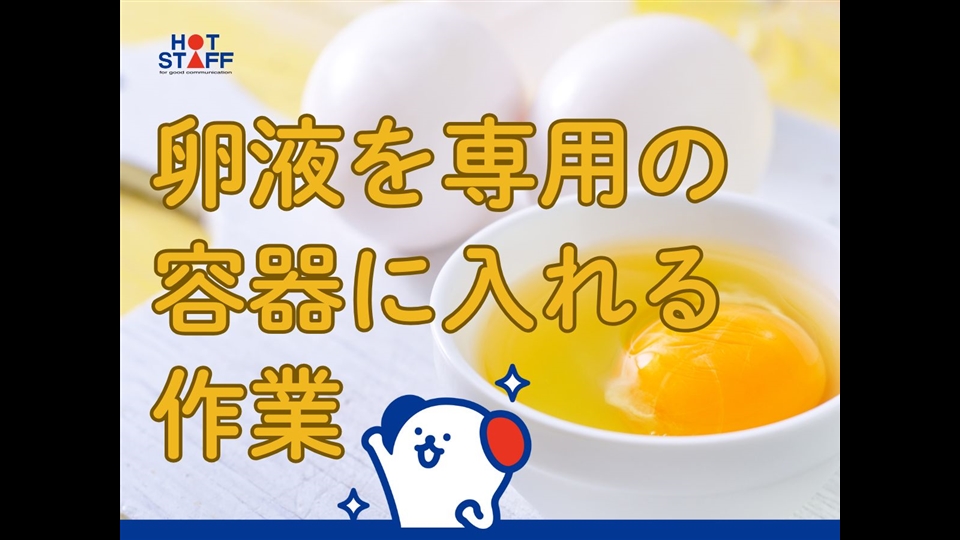 【時短・フルタイムが選べる】卵液を専用の容器に入れる作業/週4日から勤務OK/軽作業