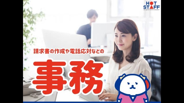 【土日祝休み】請求書の作成や電話応対の一般事務/未経験×時給1300円/残業なし