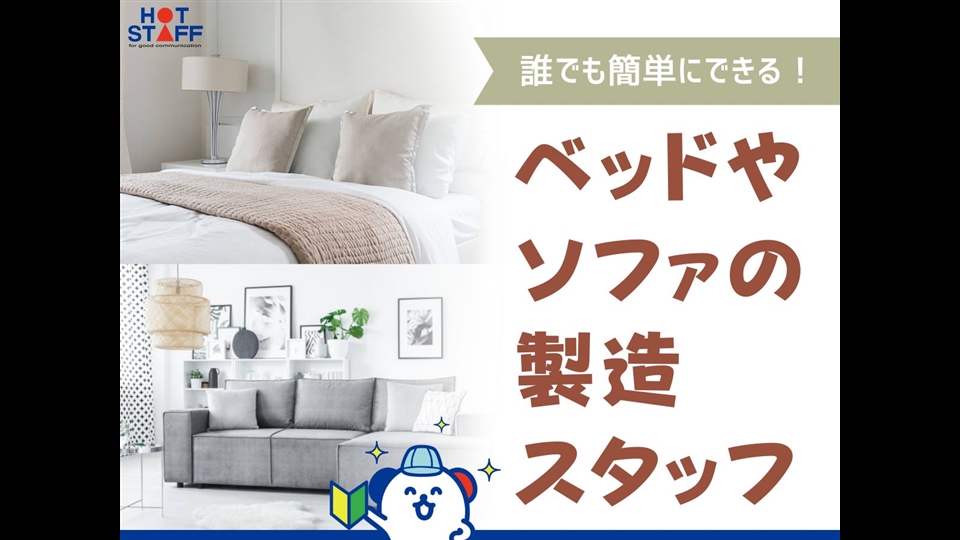 【土日祝休み×時給1400円】ベッドやソファの製造/急なお休みにも対応OK/カンタン作業