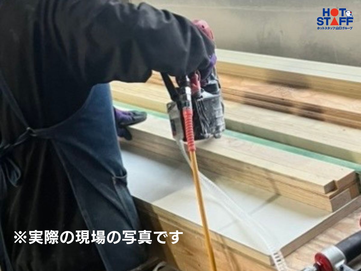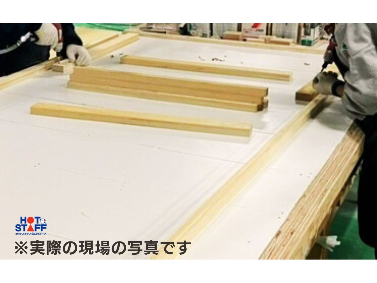 時間や休みの融通がきく♪未経験OK!ネジなどを使って木材に断熱材をくっつける!