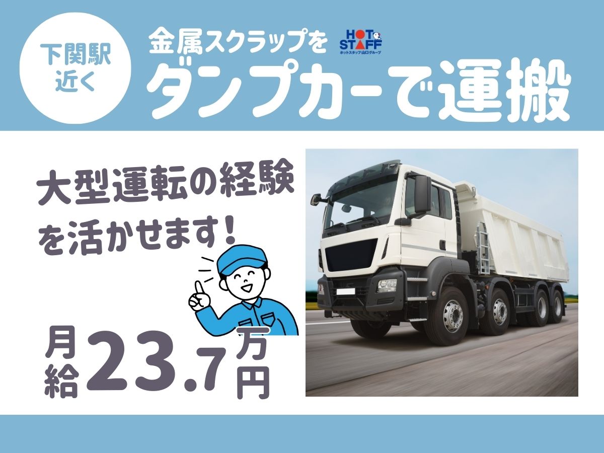 正社員募集/金属をダンプカーで運搬/月給23.7万円/人間関係良好で働きやすい/下関駅近く