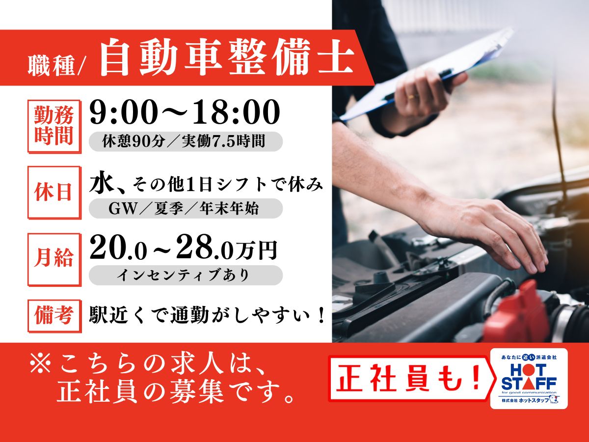 正社員募集/自動車整備士/資格を活かせる・業務経験不問・年間休日120日・シフト制