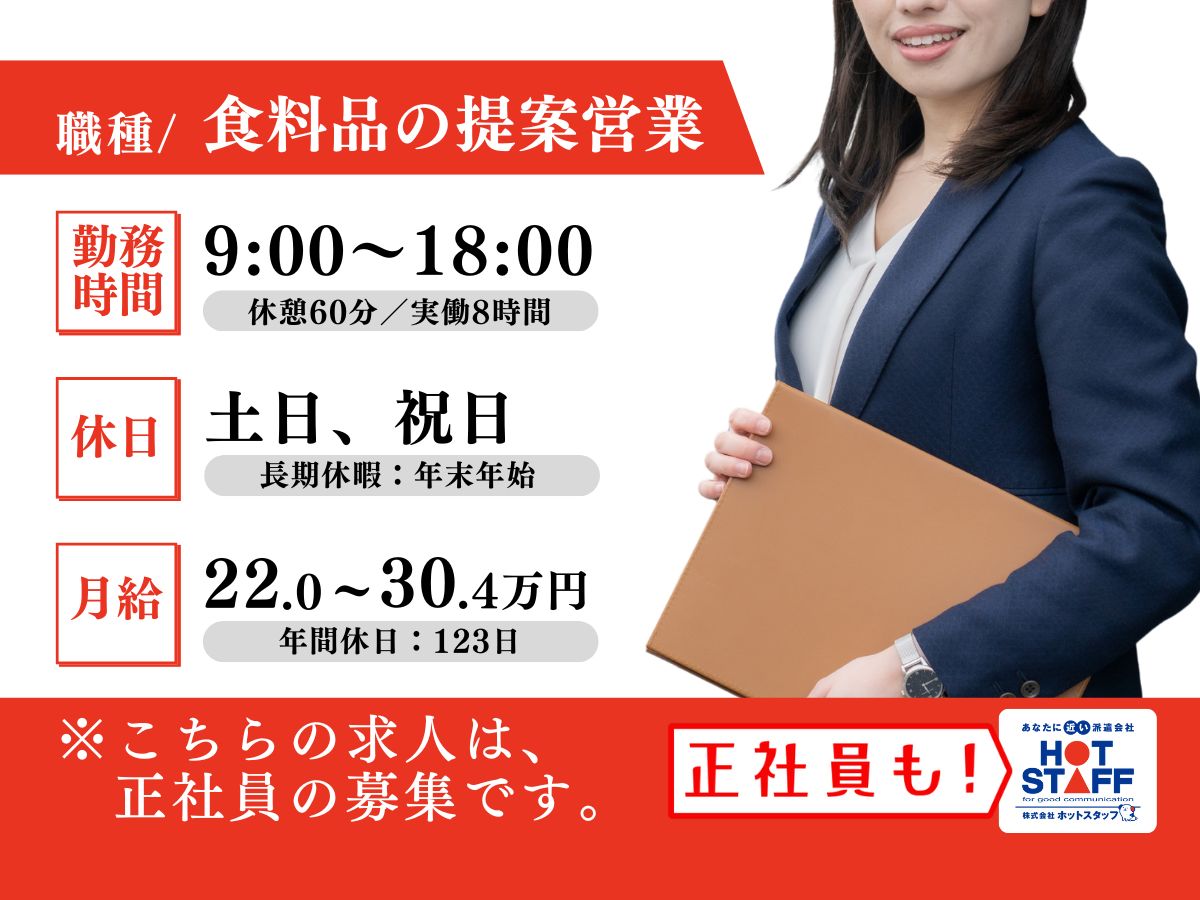 正社員募集/食料品の提案営業/土日祝休み・長期休暇あり/20~30代男女活躍中