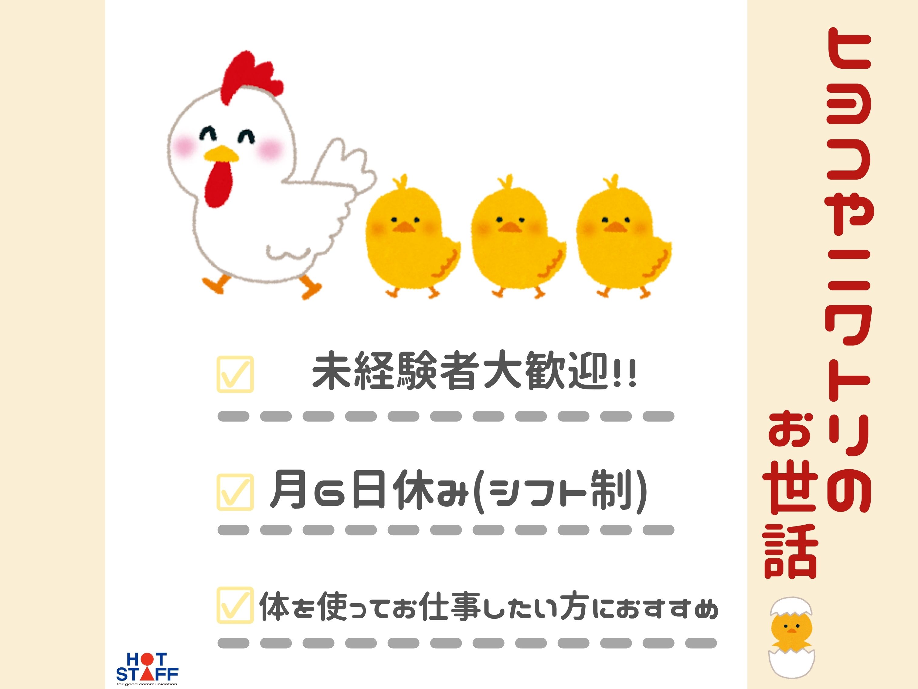 体を使ってお仕事したい方必見♪/普通自動車免許必須/週休2日・日勤/ヒヨコやニワトリのお世話