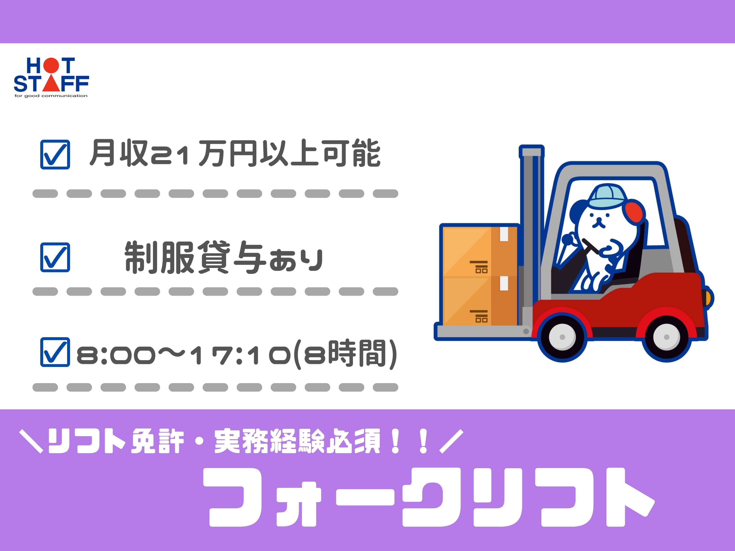 リフト免許を活かして稼ごう♪/13時~22時・土日祝休み/物流倉庫内での仕分けや積込み作業