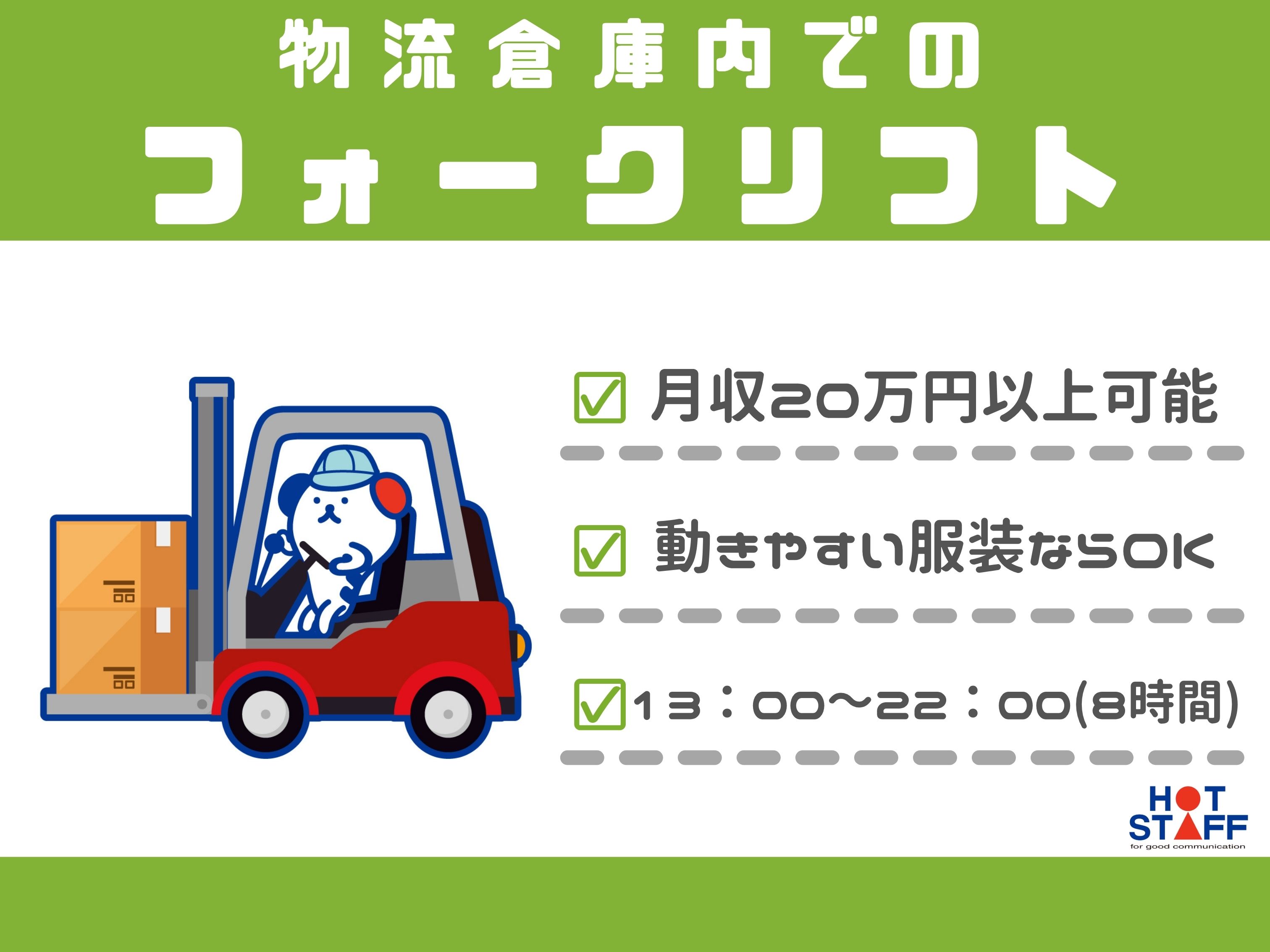 リフト免許を活かして稼ごう♪/13時~22時・土日祝休み/物流倉庫内での仕分けや積込み作業
