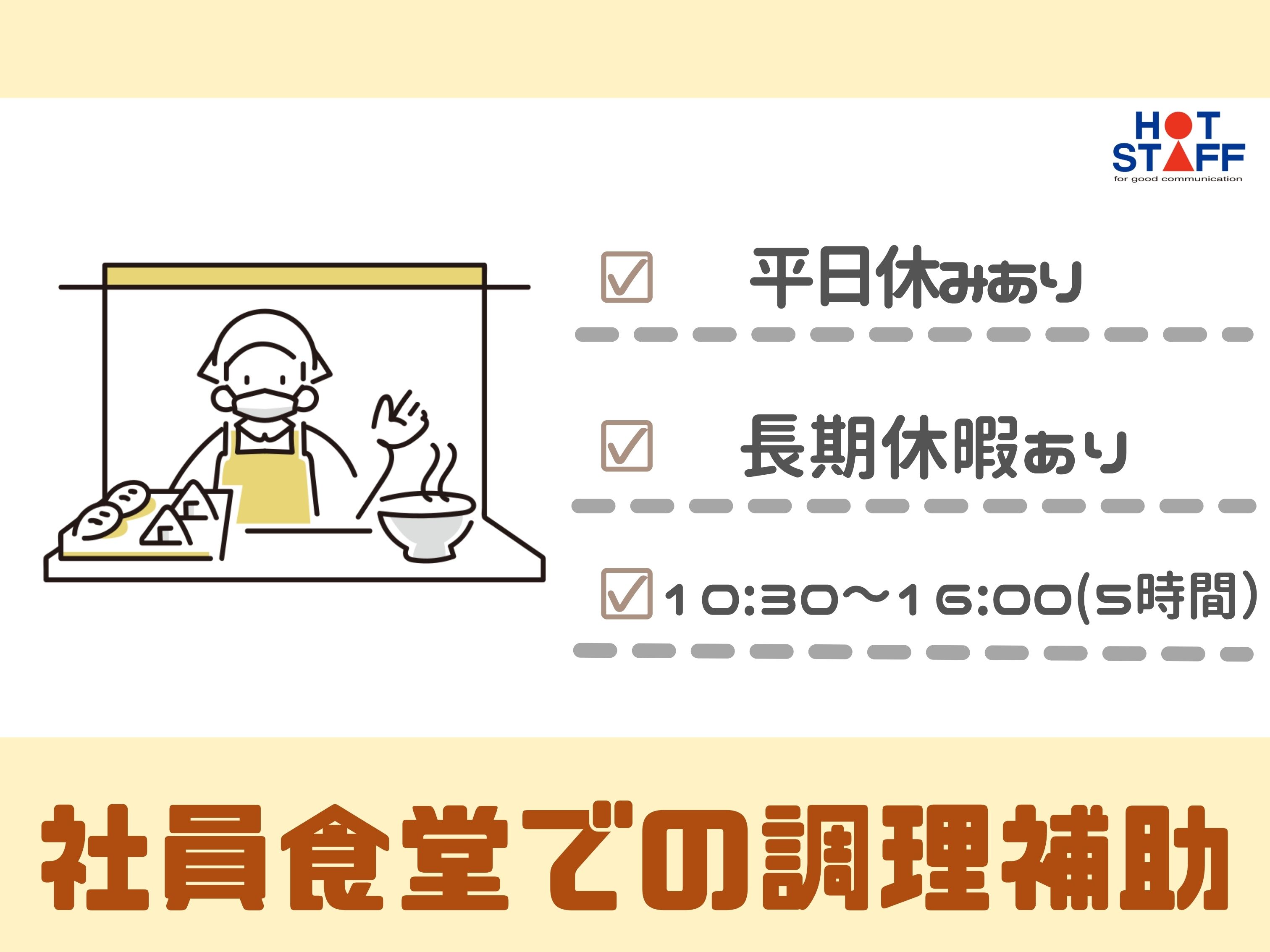 仕事と家庭の両立可能♪10時半~5時間だけ/水日祝休み/社員食堂で漬物の盛付けなどカンタン調理補助