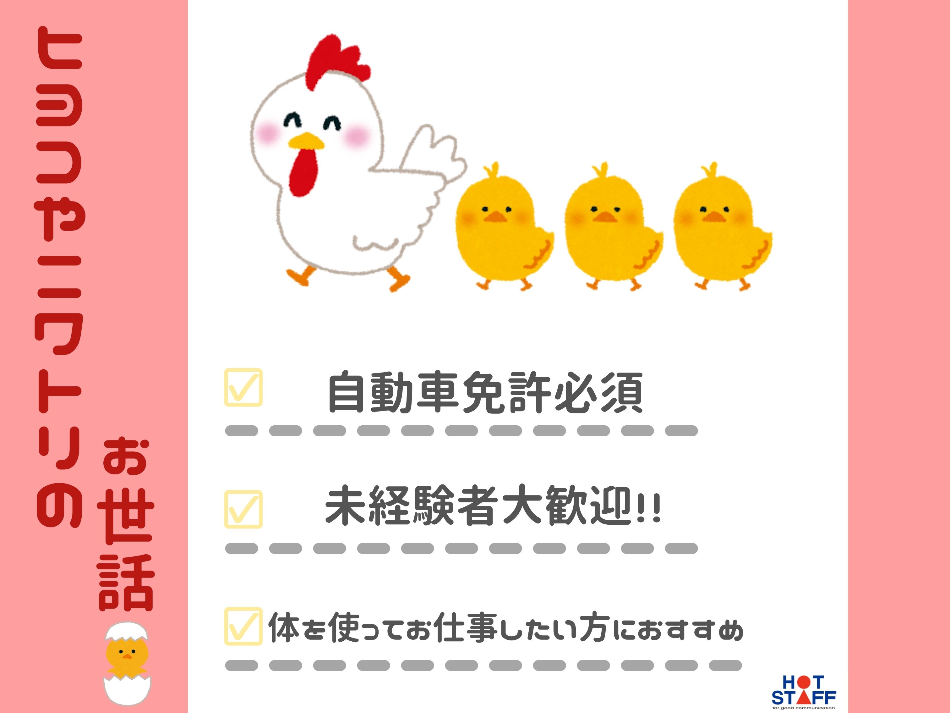 体を使ってお仕事したい方♪/自動車免許必須/週休2日・日勤/ヒヨコやニワトリのお世話