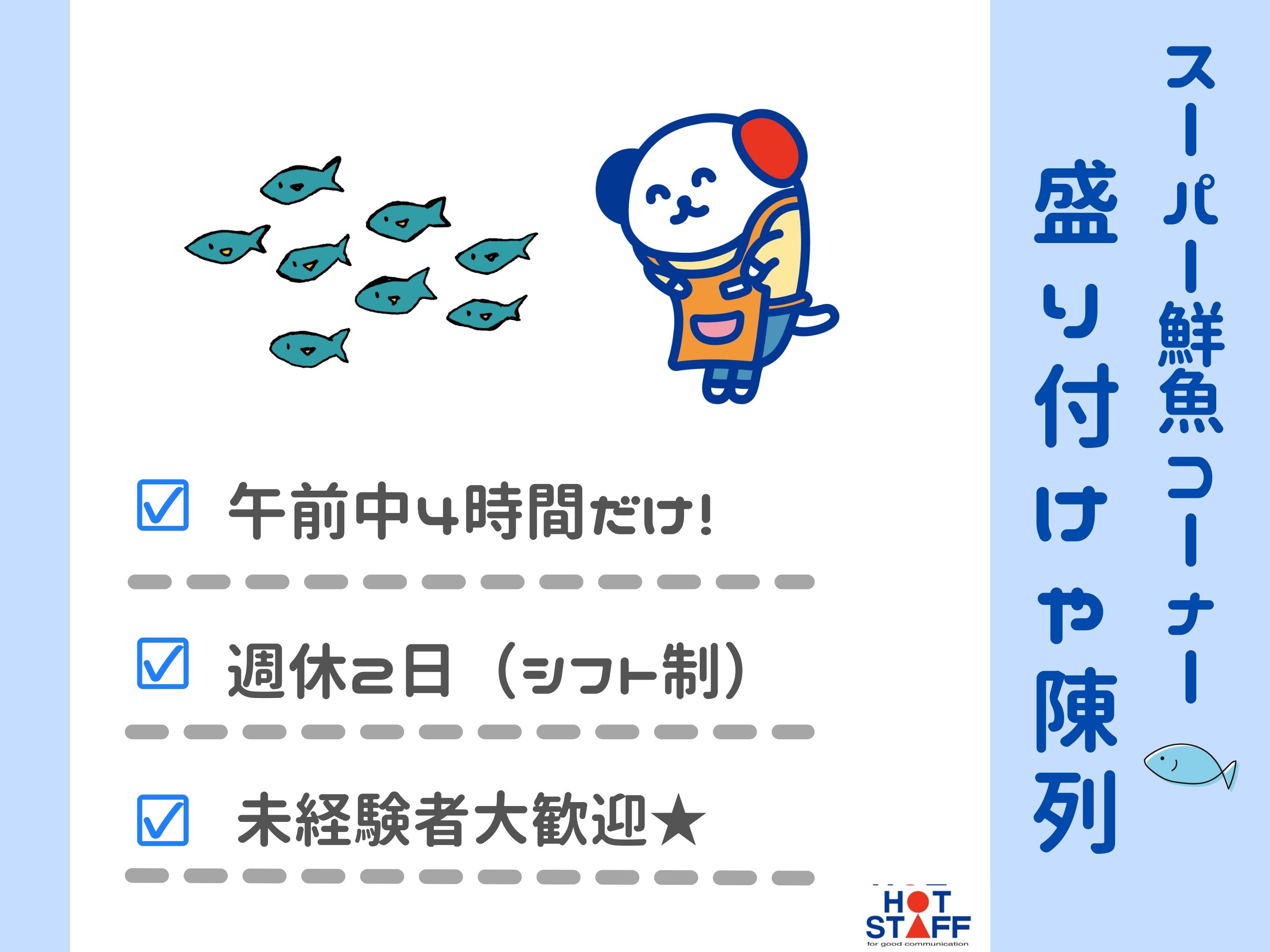 人気のカンタン作業♪/8時~12時までの4時間勤務/スーパーの鮮魚コーナーで盛り付けや品出し