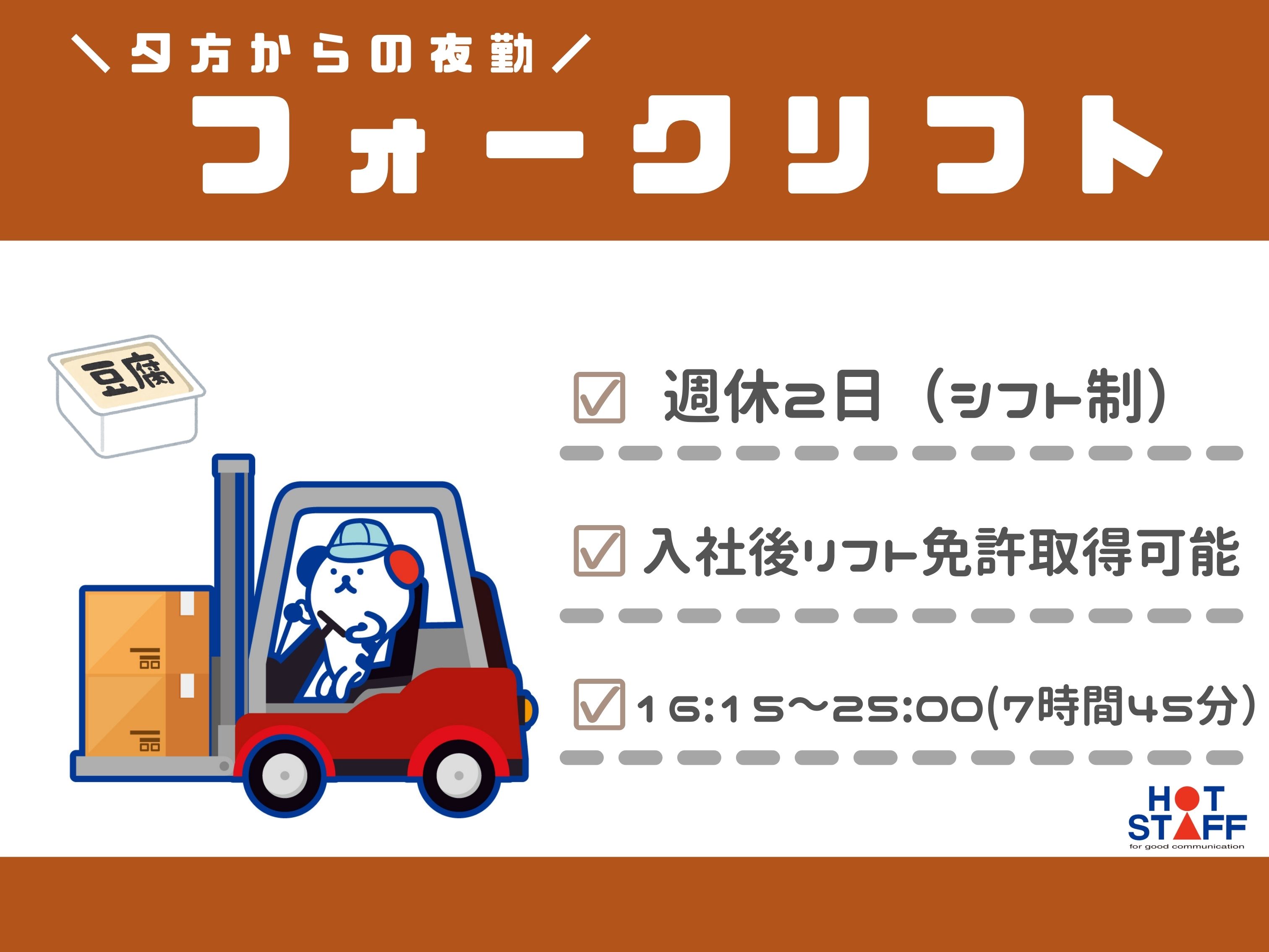免許を活かして夕方から働きたい方必見♪/週休2日・シフト制/フォークリフトで豆腐の出荷や積込み