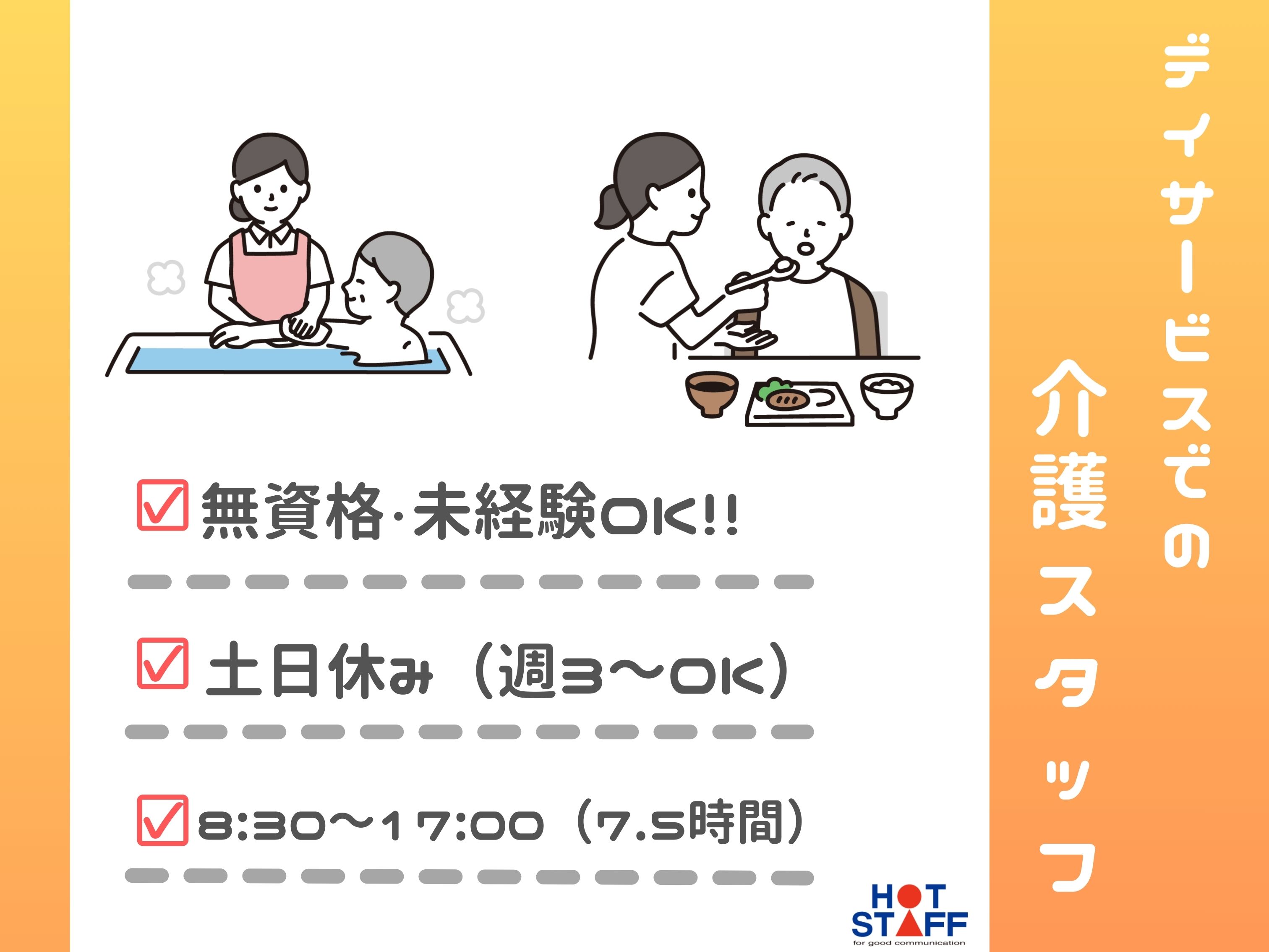 未経験からチャレンジできる♪/日勤/時間帯相談OK/デイサービスで利用者さまの身の回りのお手伝い
