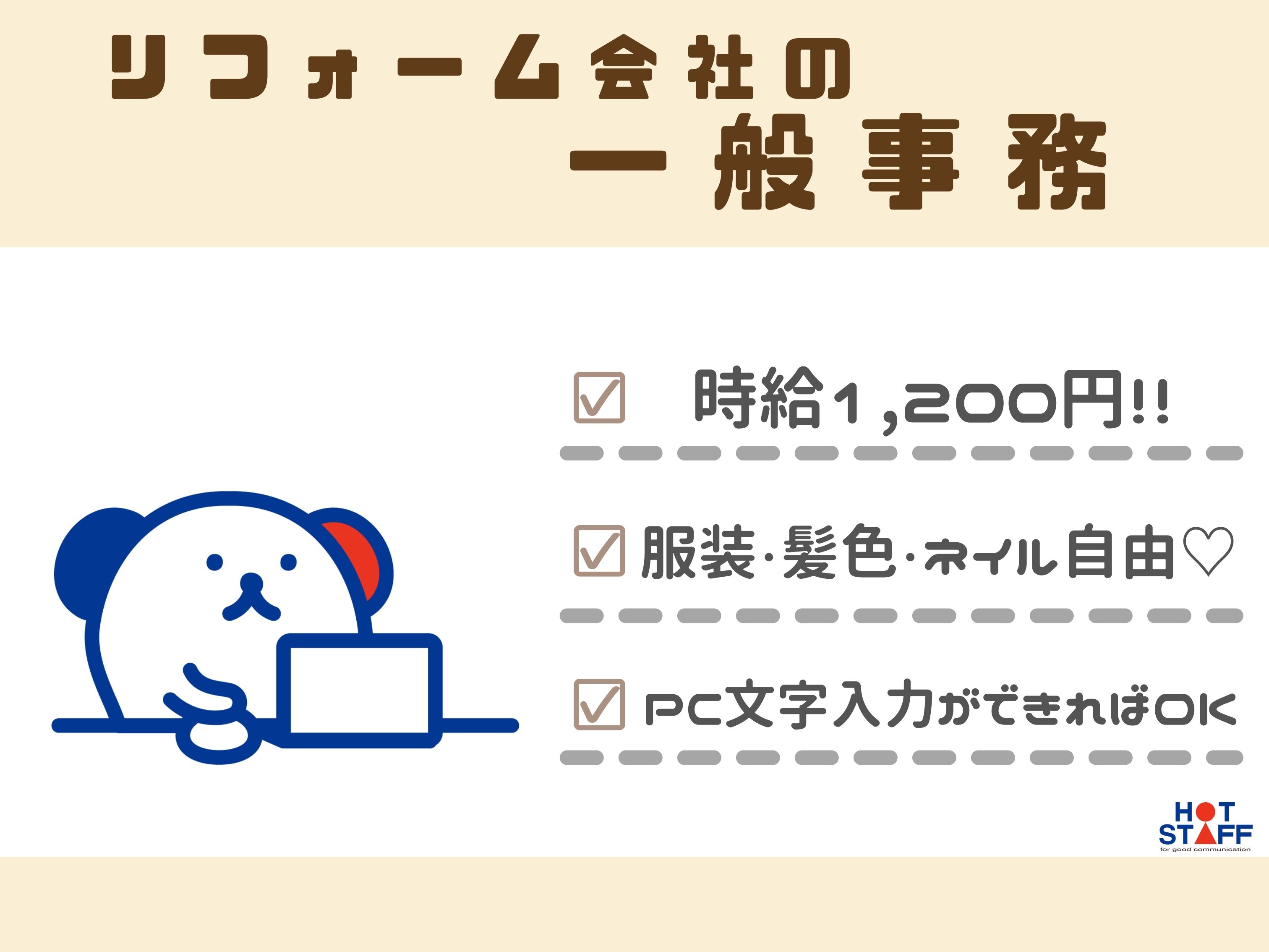 事務デビューを応援♪/服装・髪色・ネイル自由/(土)日休み/リフォーム会社で一般事務