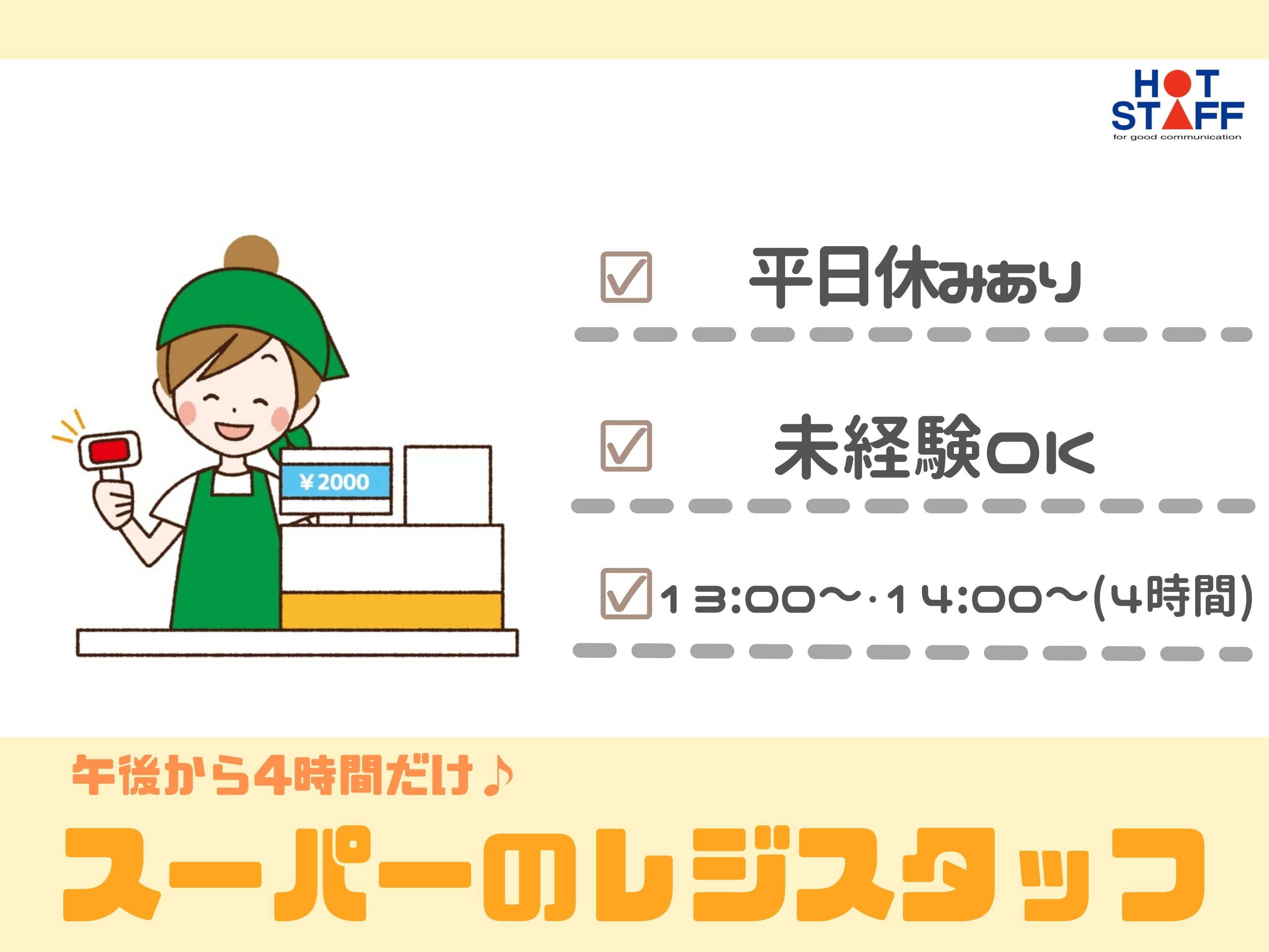 人と関わるのが好きな方にオススメ♪/午後から4時間だけ・週休2日/スーパーでのレジスタッフ