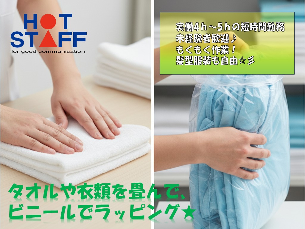 未経験歓迎/タオルなどのラッピング作業/4~5h/休日相談可能/簡単もくもく作業