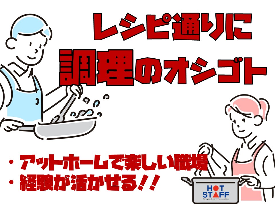 シフト制/介護施設での調理スタッフ募集/切る・炒める・盛るなどの下ごしら含む調理全般