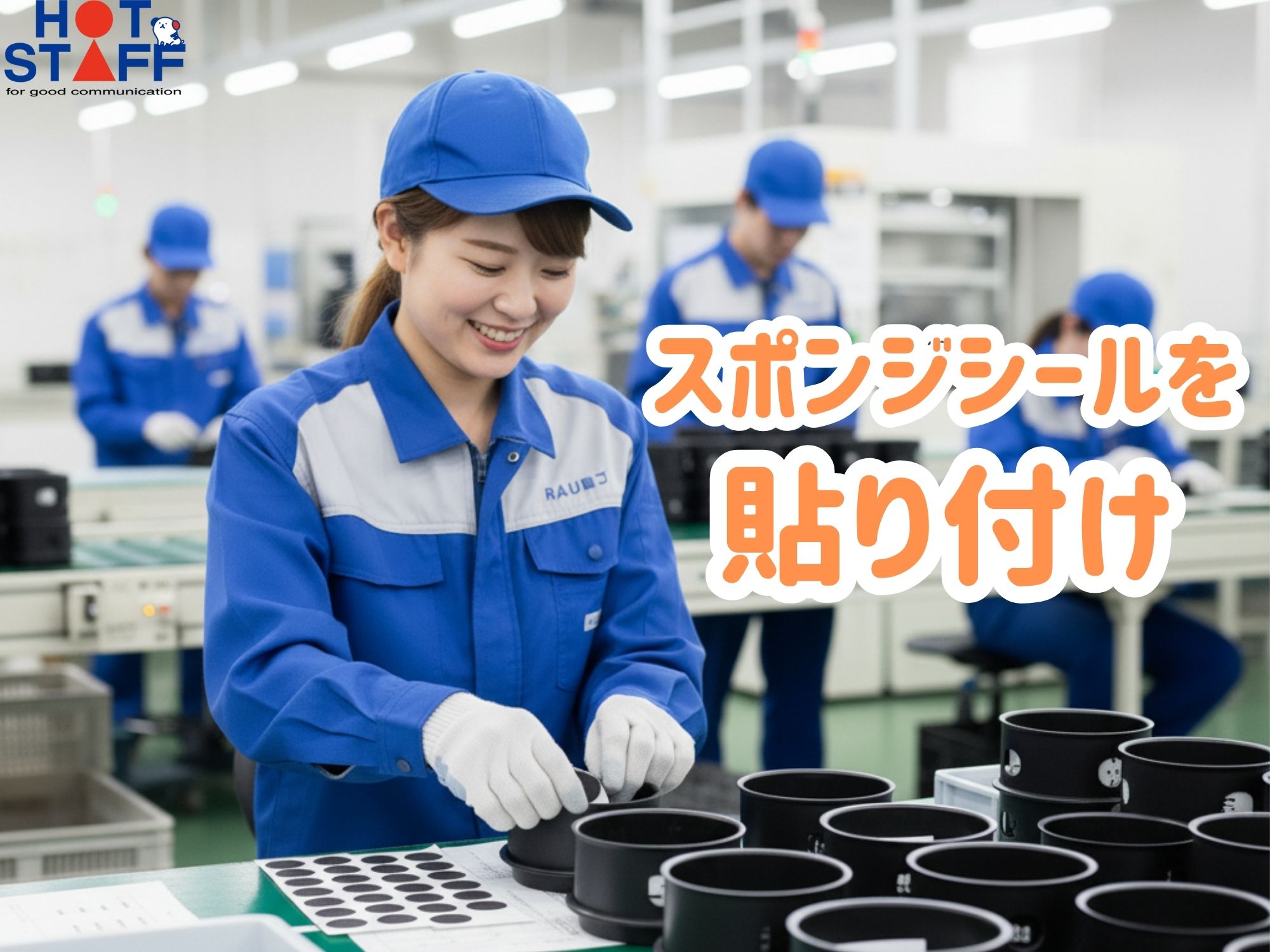 ★重量物なし!軽作業★土日休み・作業服支給/かるいドリンクホルダーにスポンジシールをペタッ!