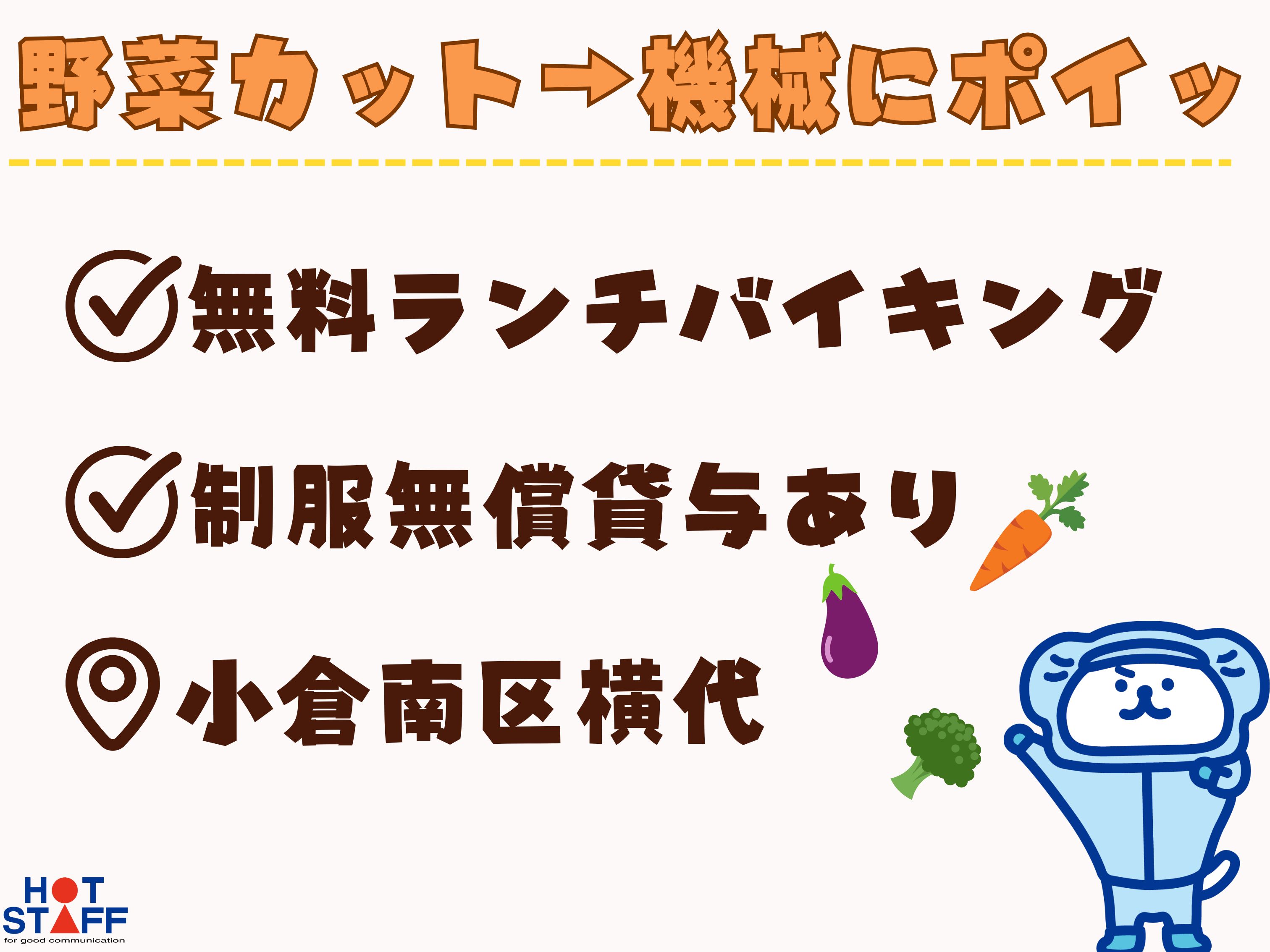【日勤・シフト制】お昼ご飯無料/未経験OK/野菜カット→機械へポイッ!