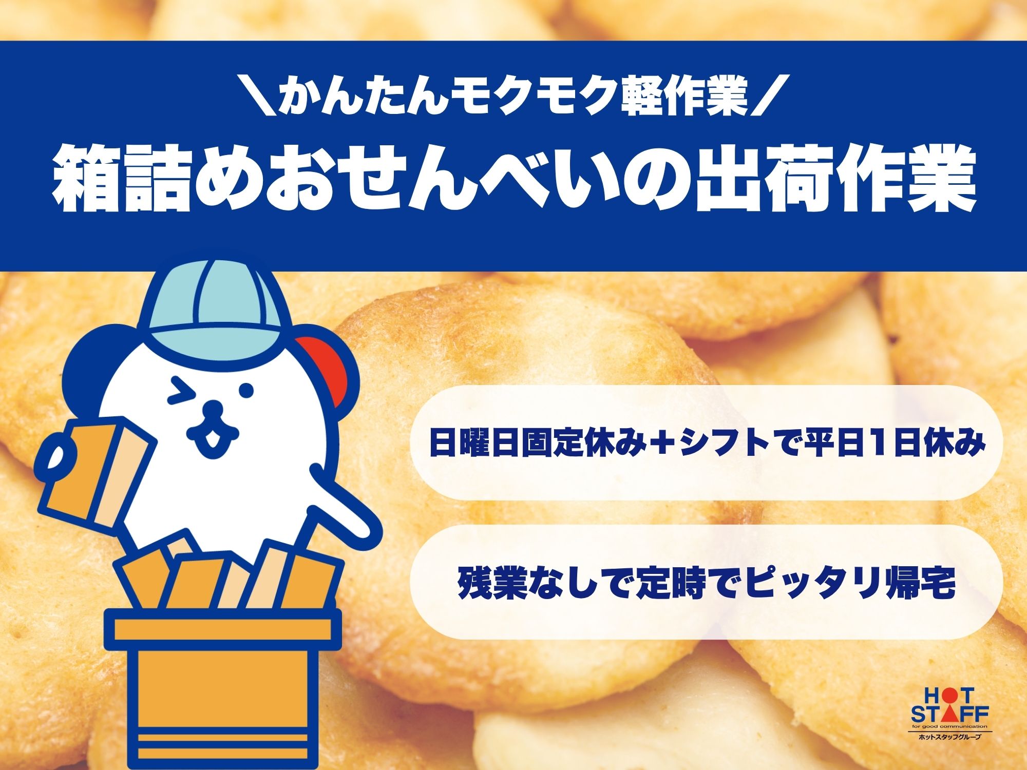 日勤/日曜固定休み/残業なし/カンタン軽作業/箱詰めおせんべいのピッキング・出荷作業