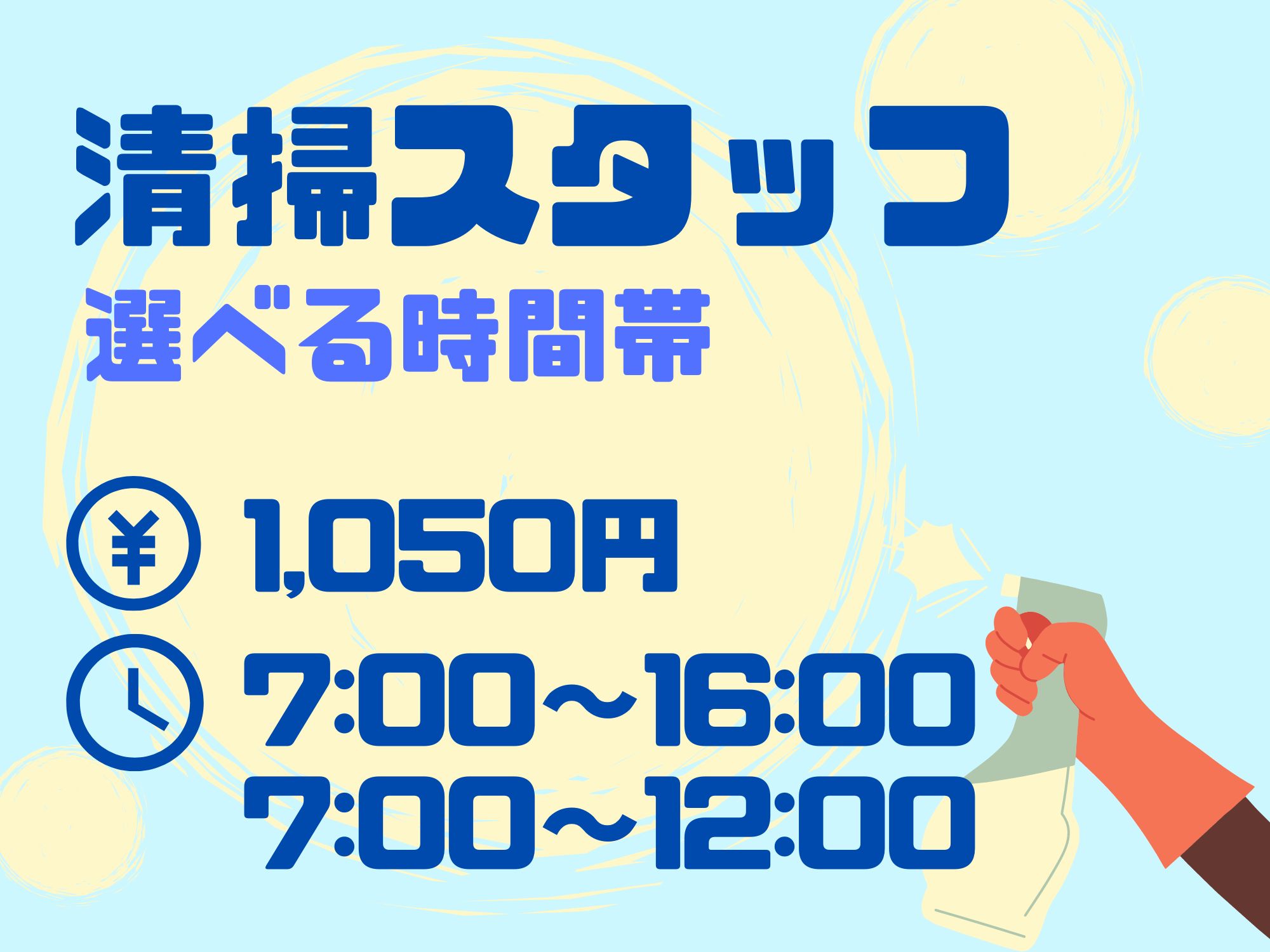 日祝休み/シフト制/週4日~勤務日数相談OK/フルタイムと短時間で選べる病院内清掃スタッフ