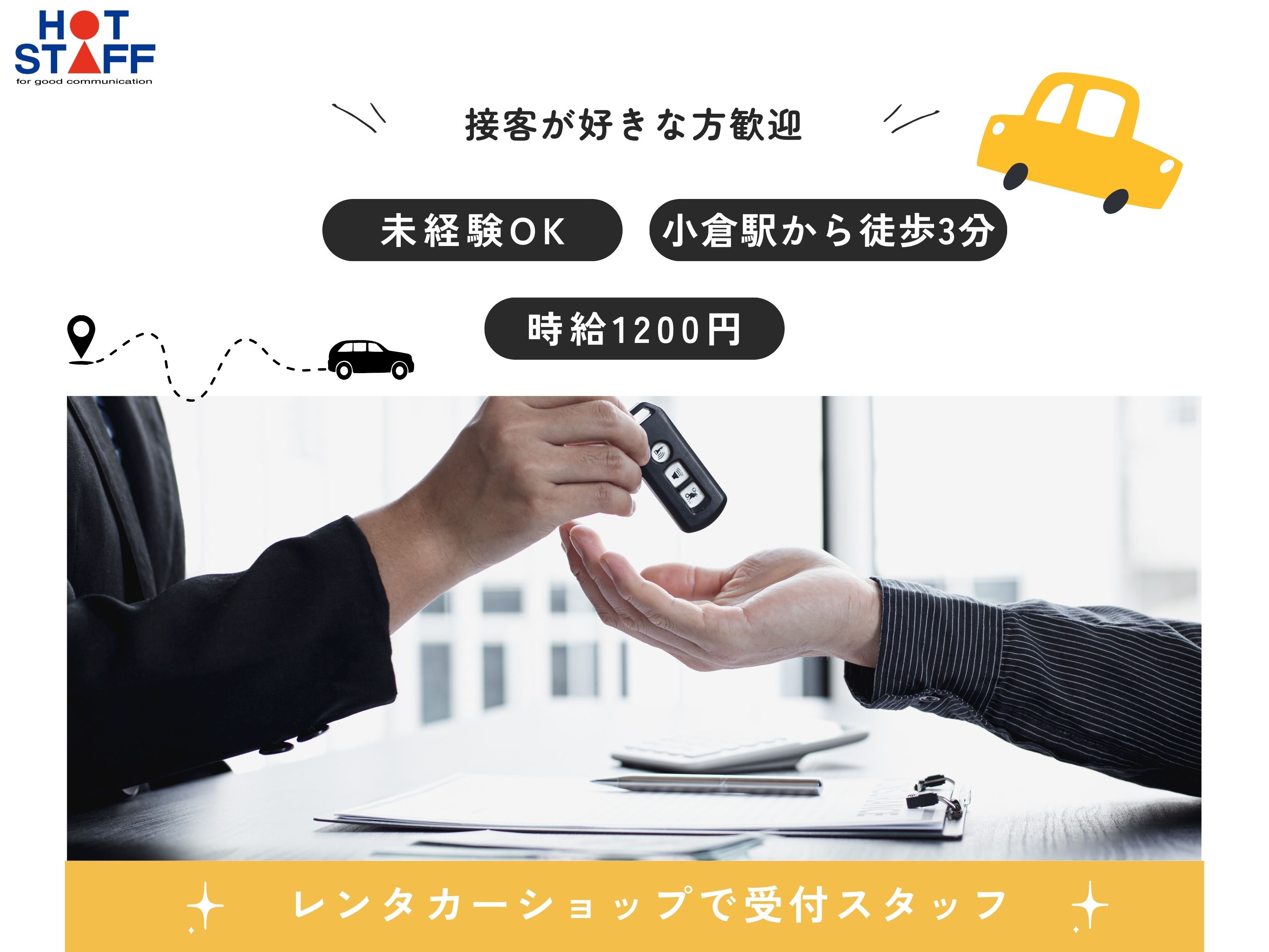 【小倉駅徒歩3分】残業少なめ◎シフト制/レンタカーショップで受付や車の移動
