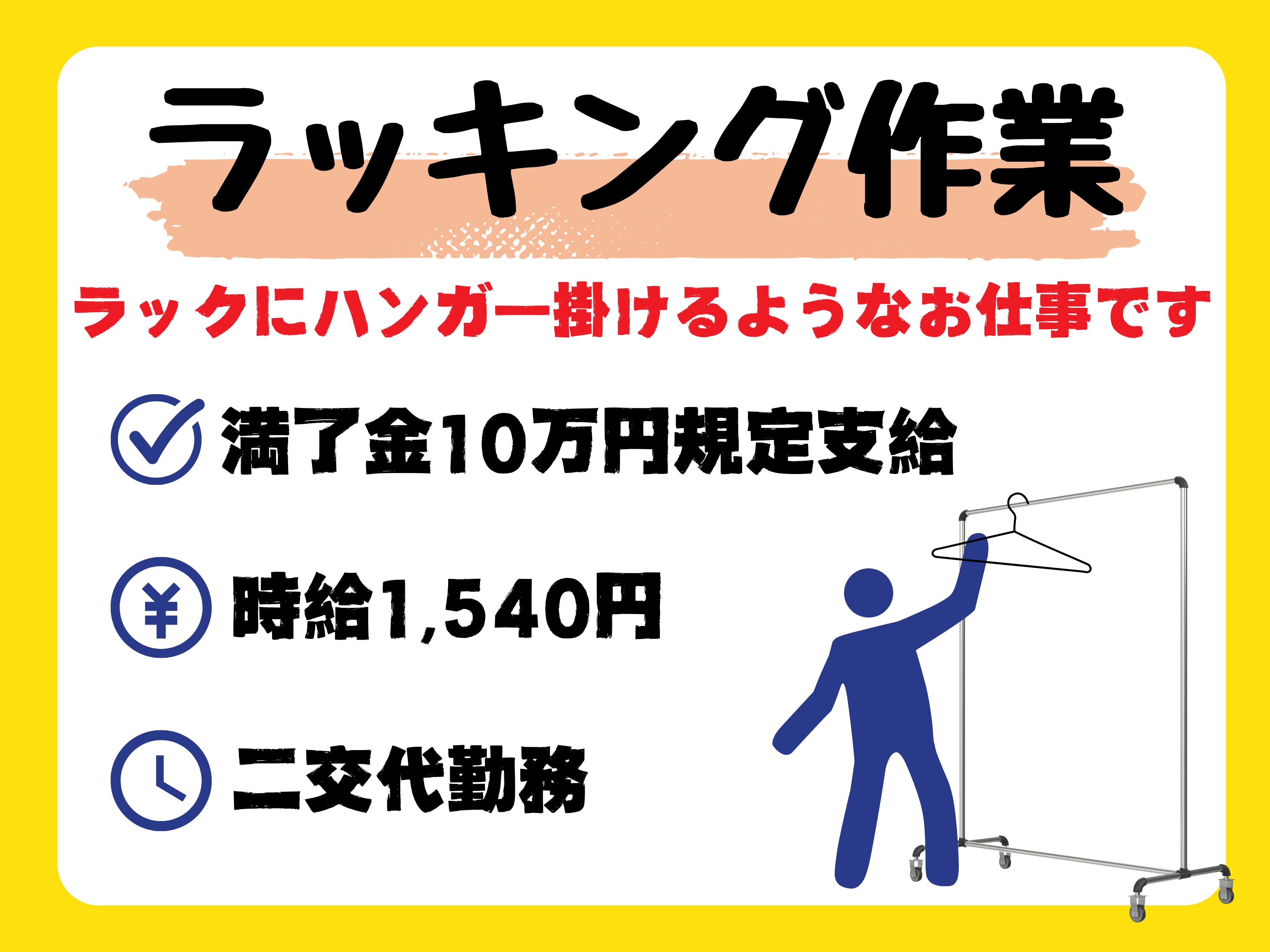 ★がっつり稼ぎたい方必見★2交替勤務の高収入!ラックにハンガーかけるような作業