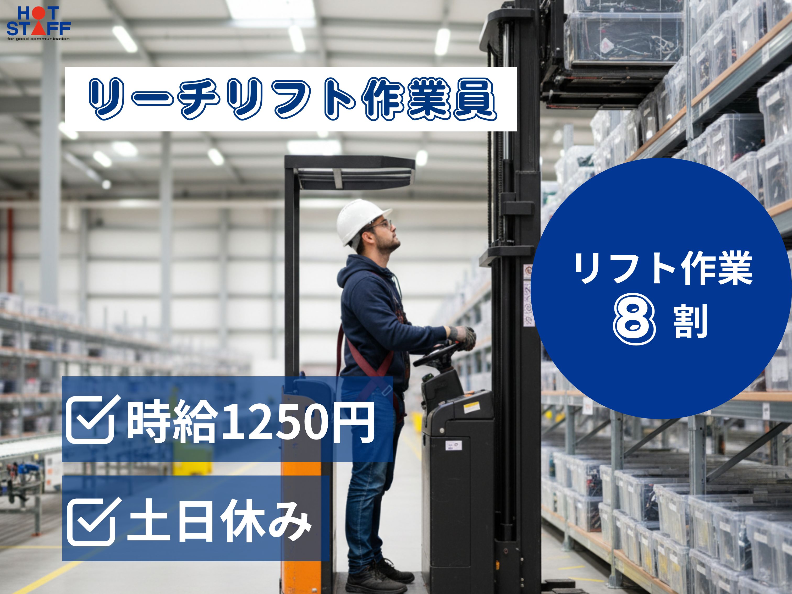 土日祝休み★物流倉庫でリーチリフト作業!/リフト免許ない方はピッキング作業など!