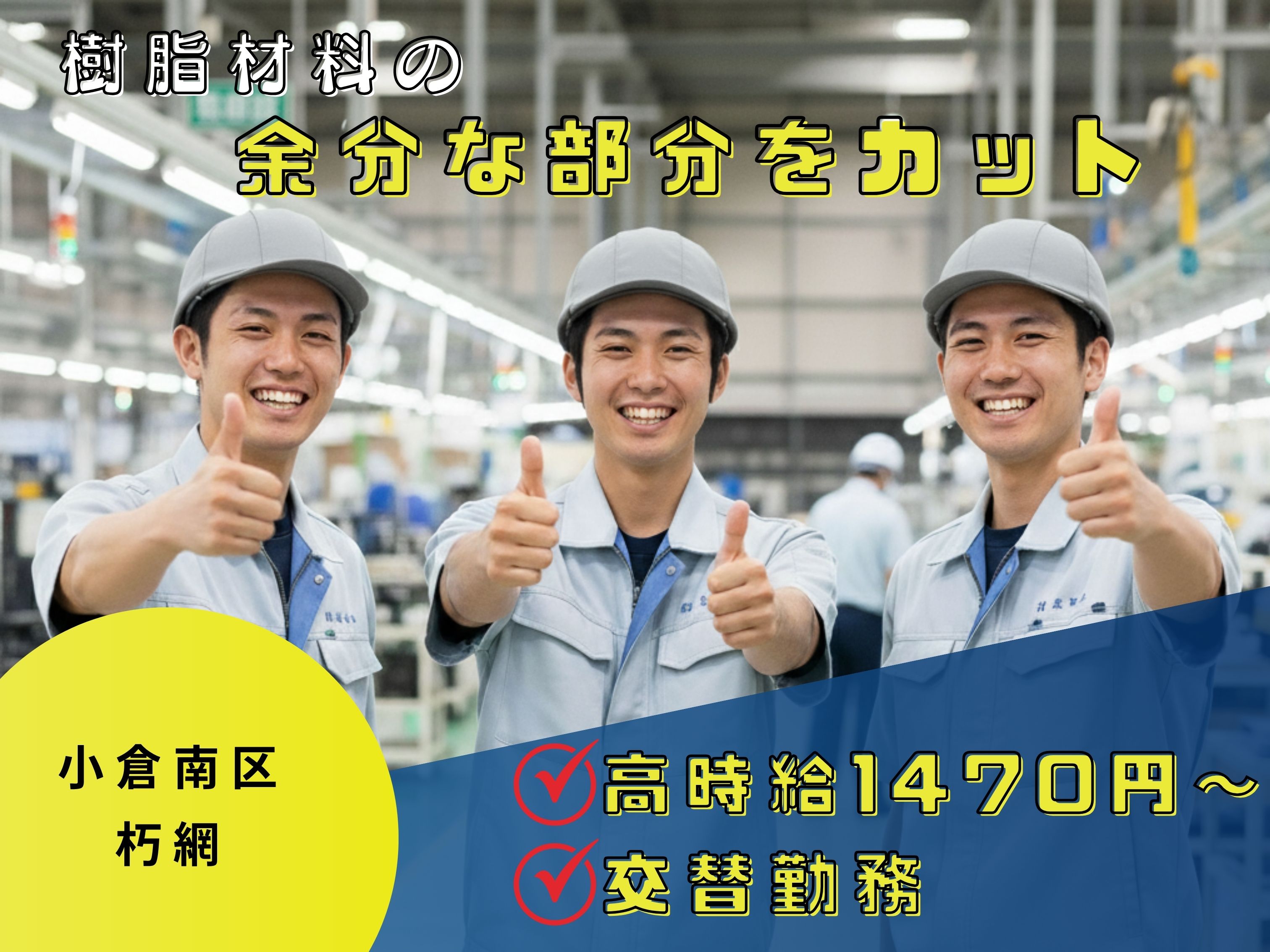 ★収入重視さんにオススメ★未経験から高時給1470円/樹脂材料の余分な部分をカッターでカット!