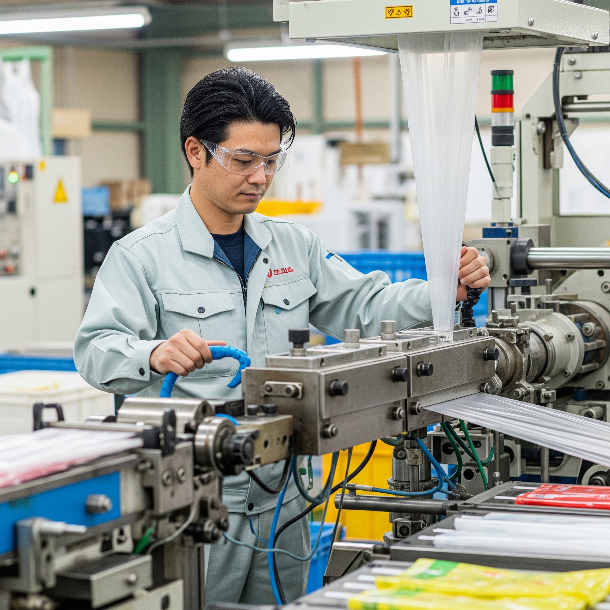ポリエチレン製バッグ、食品包装用資材などの製品の製造ラインでの仕事で