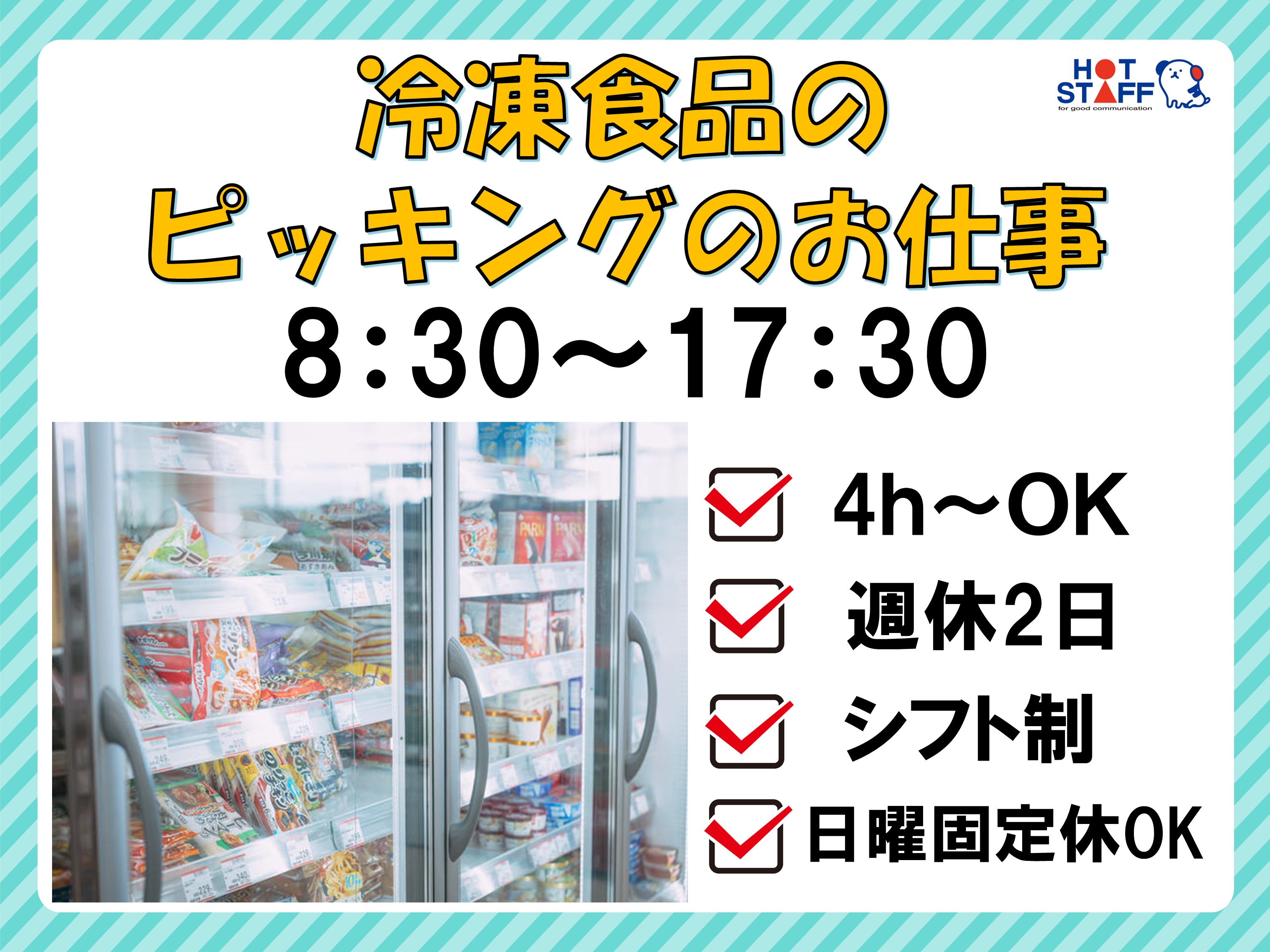 高時給・冷凍食品の検品と仕分け・4h~OK・週休2日シフト制・日曜日休み相談可