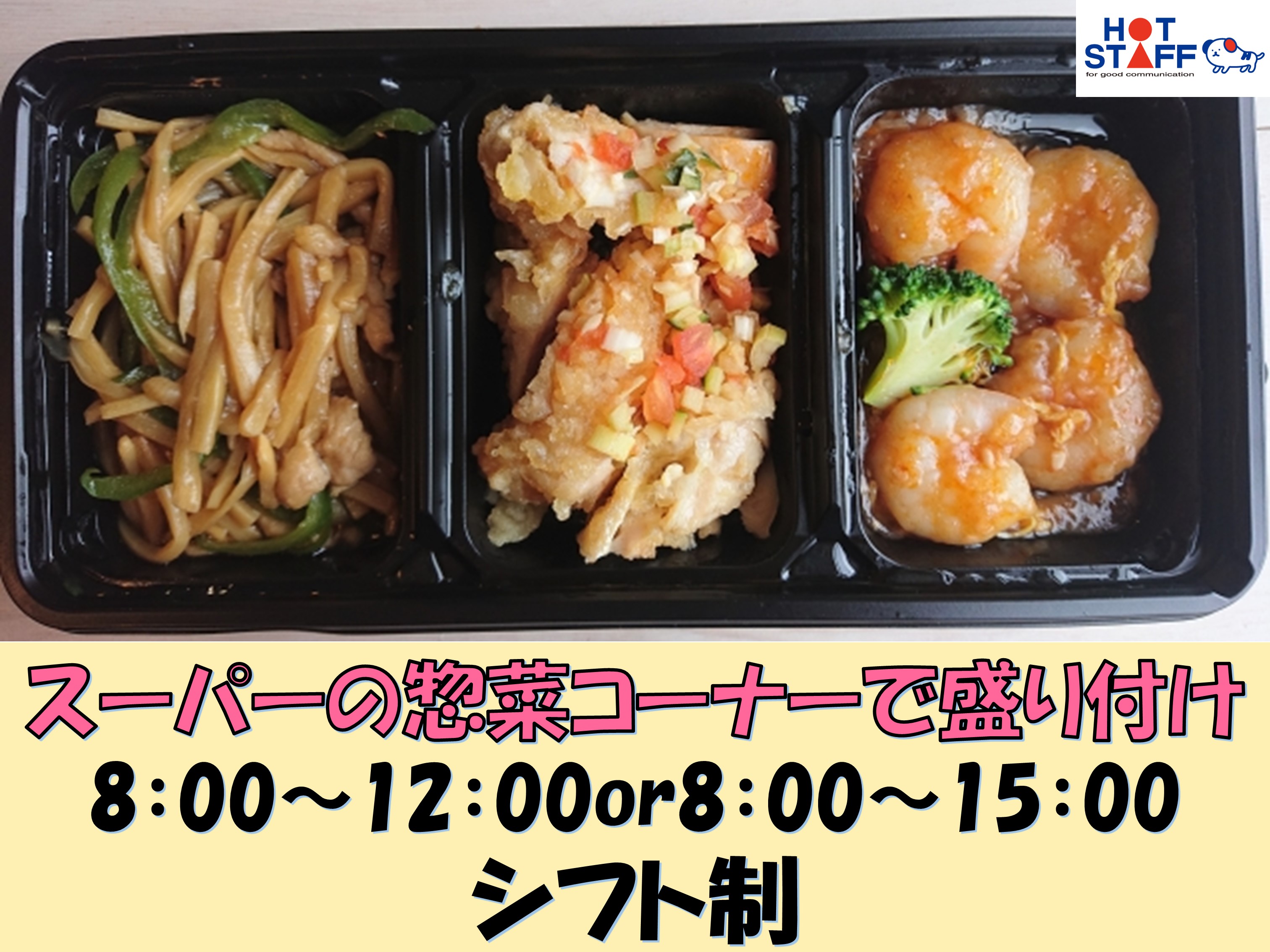 お惣菜が美味しいと評判のスーパーでお弁当作りのお仕事!