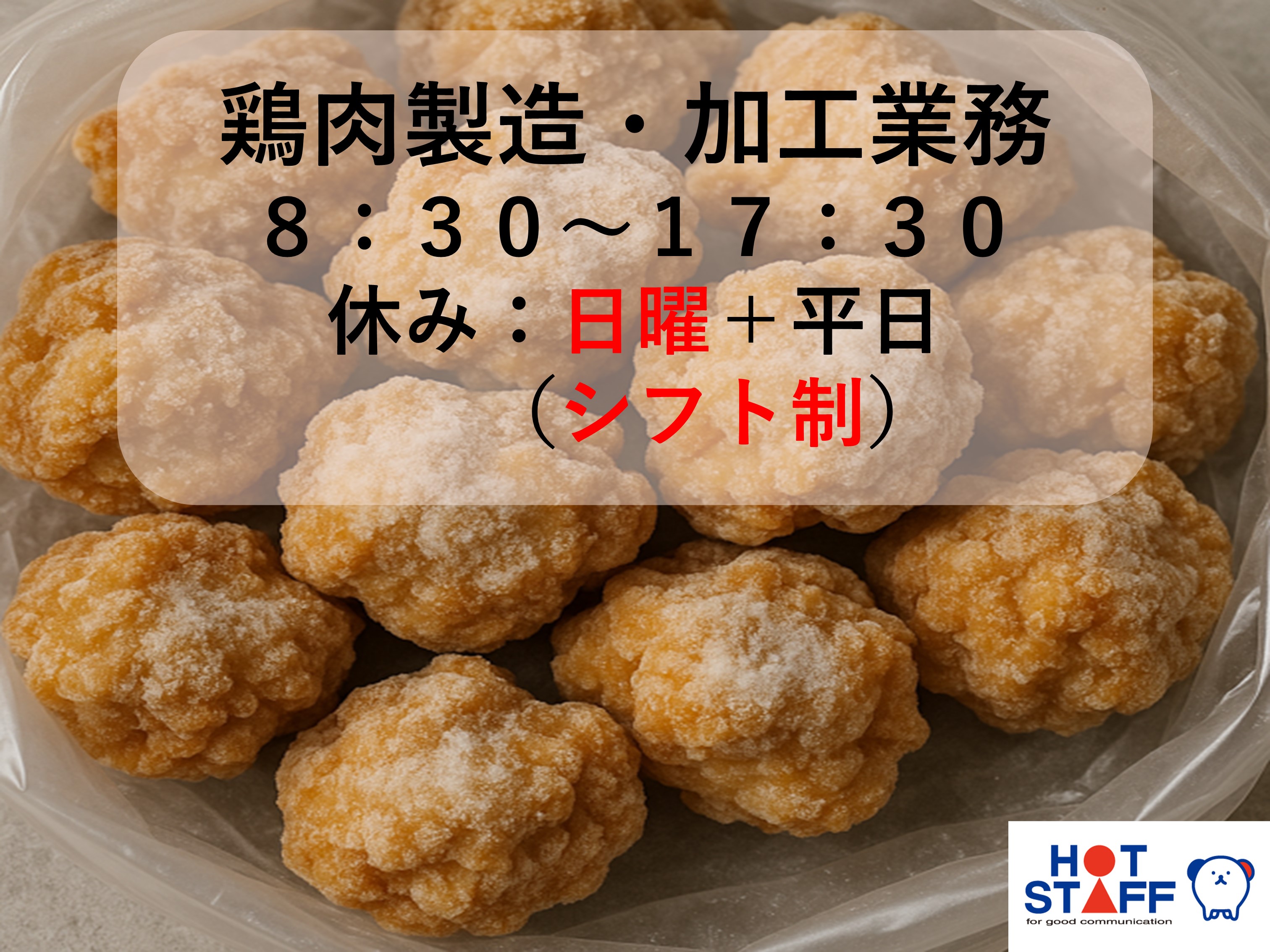 よく見る冷凍の唐揚げや肉団子、サラダチキンなどの製造のお仕事!