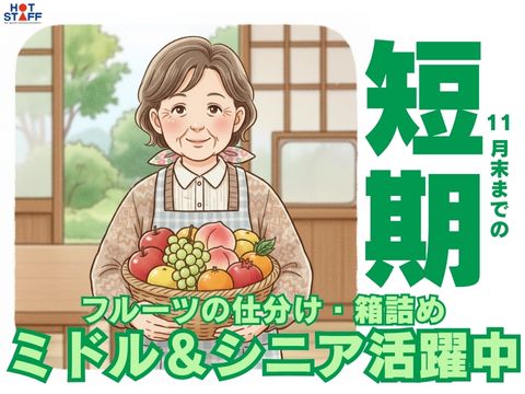 【東根市若木通り】11月末まで/1ヶ月間のみ短期/土曜+平日1日おやすみ/フルーツの仕分け・箱詰めのオシゴト!